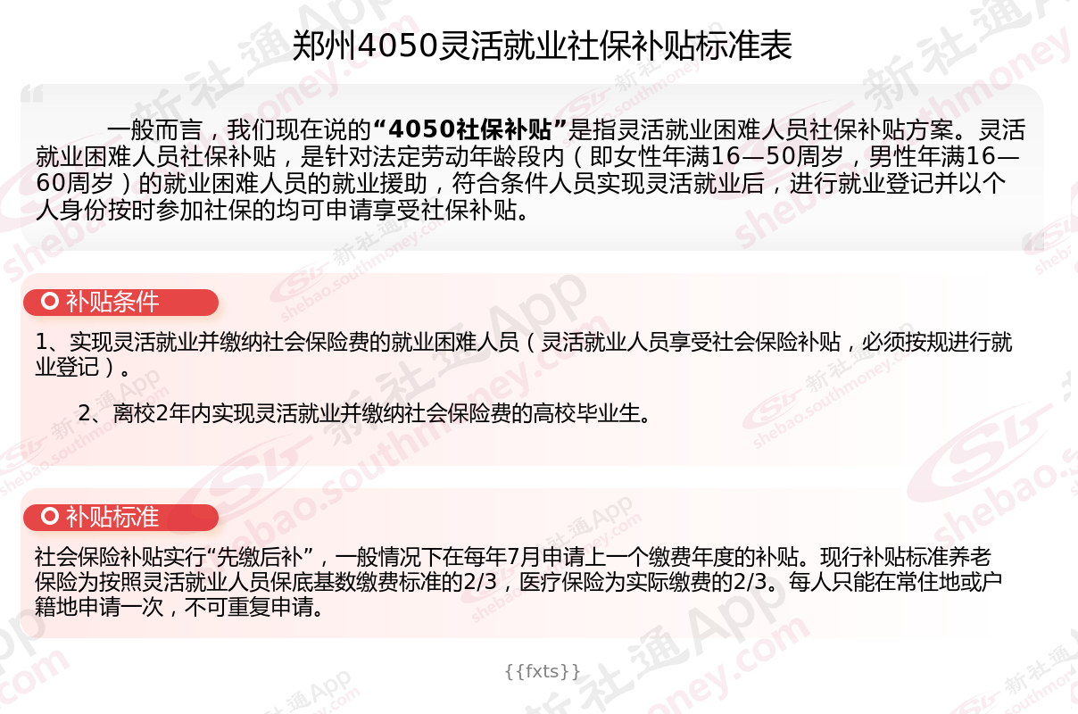 以上就是郑州4050灵活就业社保补贴的相关内容,欢迎关注新社通/下载新社通APP了解更多五险一金专业资讯。