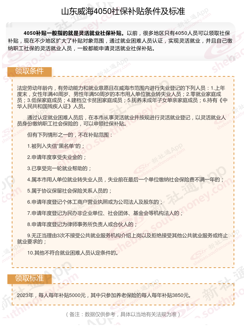 一、山东威海4050社保补贴标准及条件2025年最新消息
