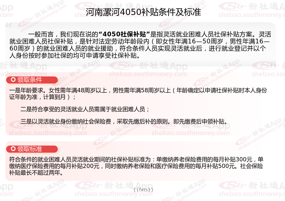 以上就是河南漯河4050灵活就业社保补贴的相关内容,欢迎关注新社通/下载新社通APP了解更多五险一金专业资讯。