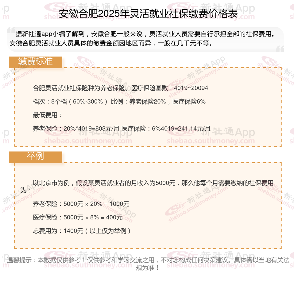一、2025年安徽合肥灵活就业社保缴费标准公布啦 安徽合肥灵活就业社保多少钱一个月?