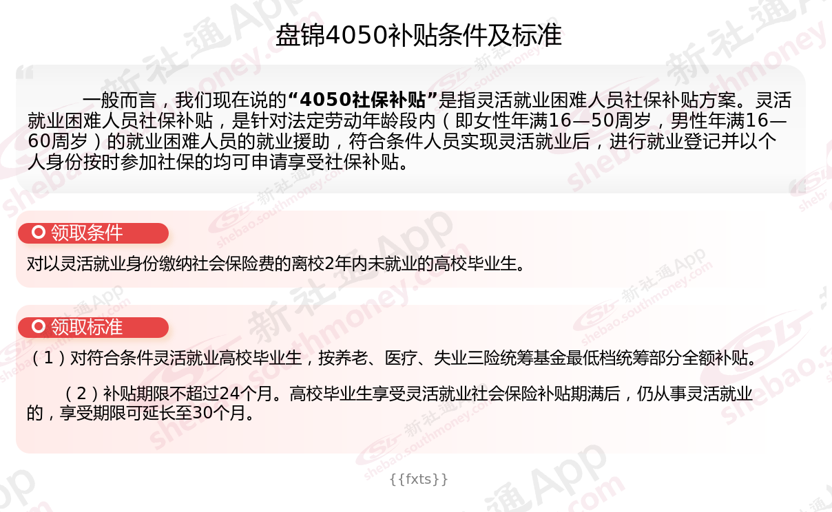 以上就是盘锦4050灵活就业社保补贴的相关内容,欢迎关注新社通/下载新社通APP了解更多五险一金专业资讯。