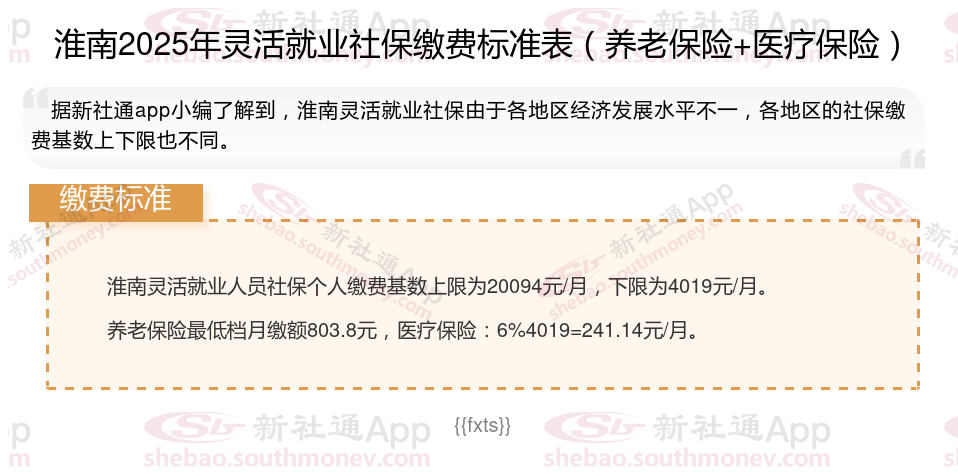 以上就是新社通小编带来淮南灵活就业社保缴费知识,内容供参考,希望对你有帮助,欢迎关注/下载新社通APP解锁更多社保专业资讯。