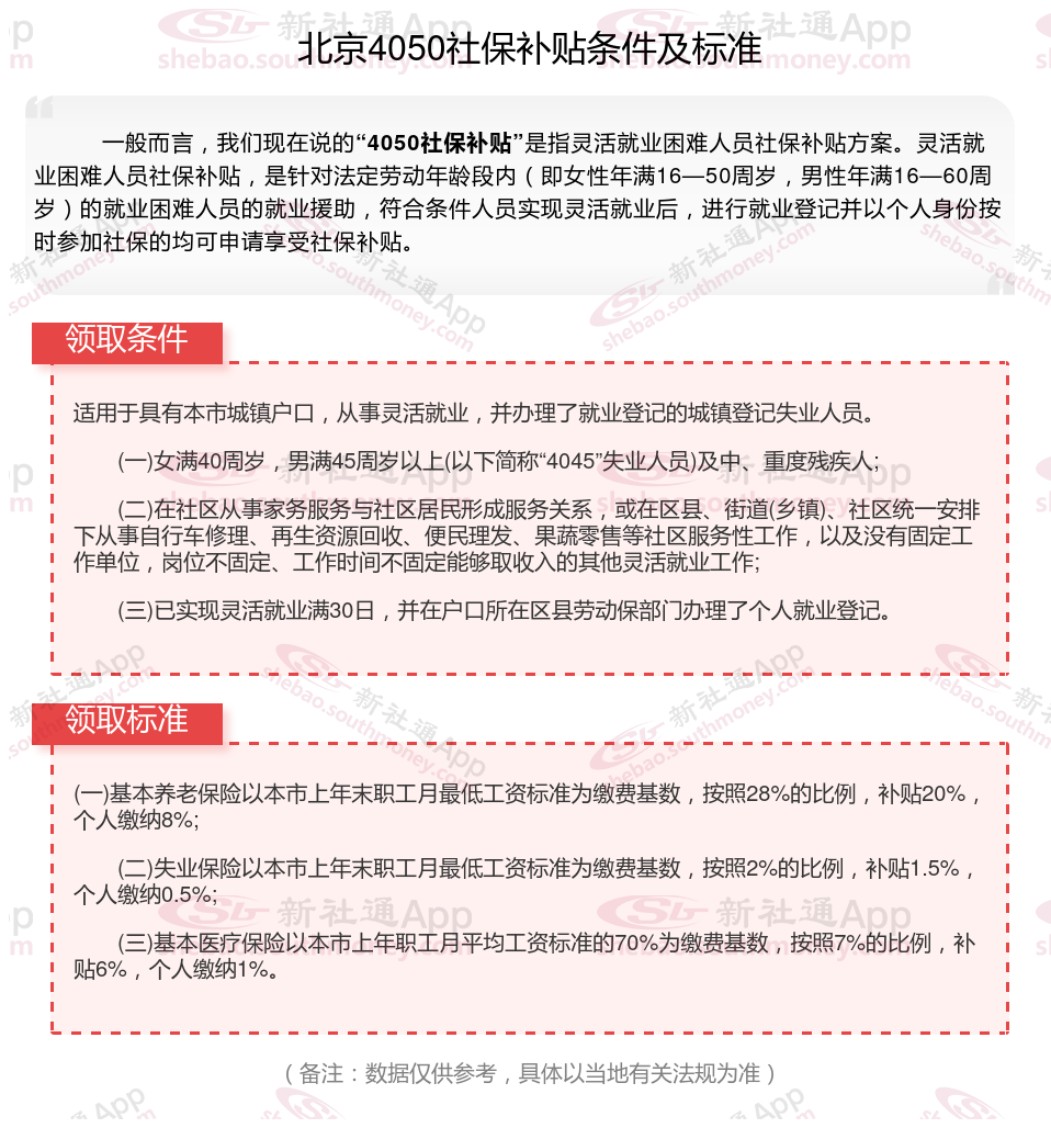 一、2023-2024年北京4050社保补贴标准及条件,最新如下
