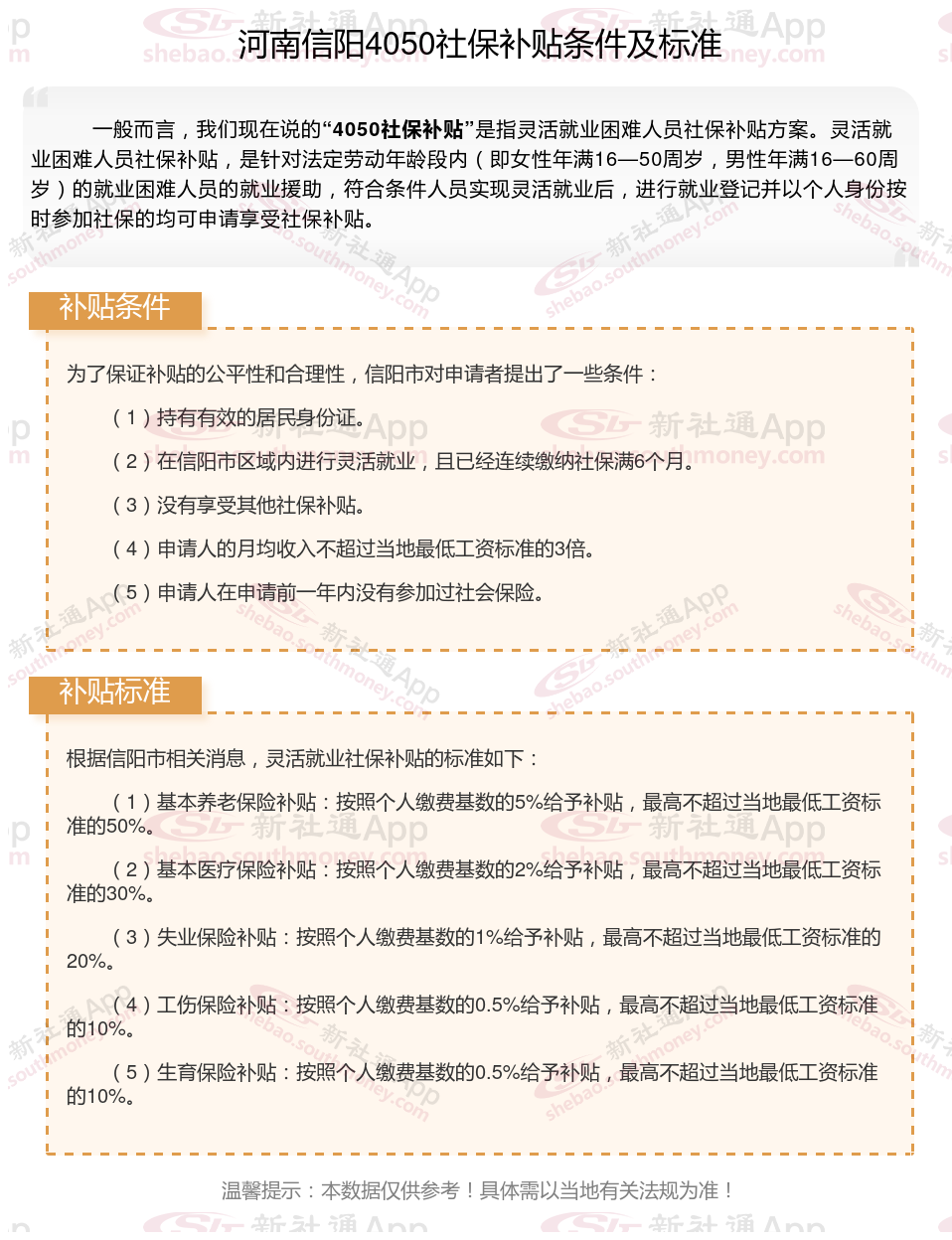 以上就是河南信阳4050灵活就业社保补贴的相关内容,欢迎关注新社通/下载新社通APP了解更多五险一金专业资讯。