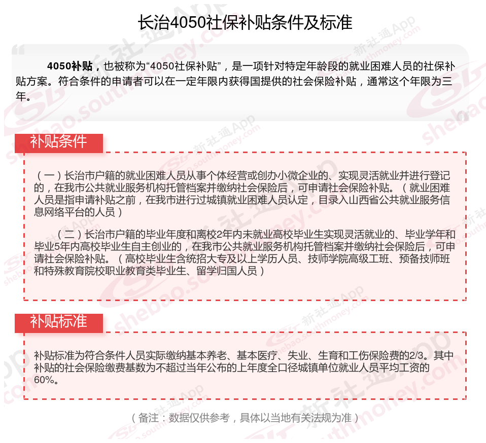 一、长治4050社保补贴标准及条件2025年最新消息