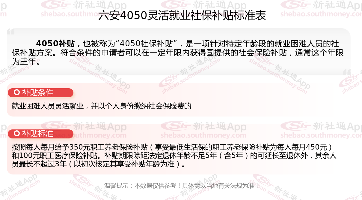 二、六安4050社保补贴多少钱一个月?六安4050社保补贴2025年最新标准是多少?