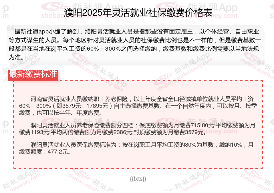 濮阳灵活就业人员基本养老保险缴费基数暂按不低于3579元;