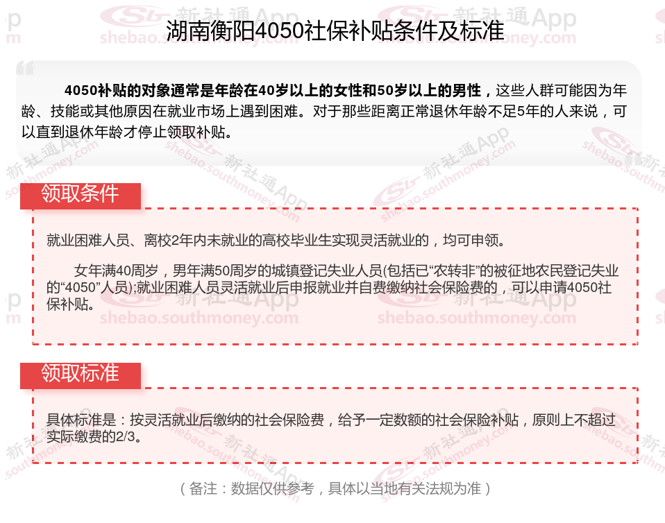 以上就是湖南衡阳4050灵活就业困难人员社保补贴的相关内容,欢迎关注新社通/下载新社通APP了解更多五险一金专业资讯。
