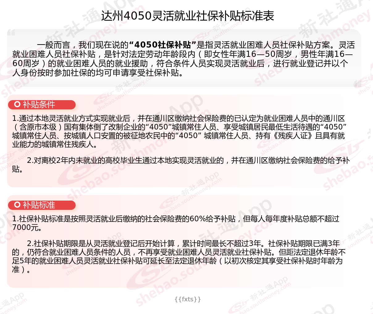 二、2025年达州4050社保补贴标准(达州4050灵活就业人员补贴标准是多少钱?达州2025年4050补贴新规能领多少钱?)