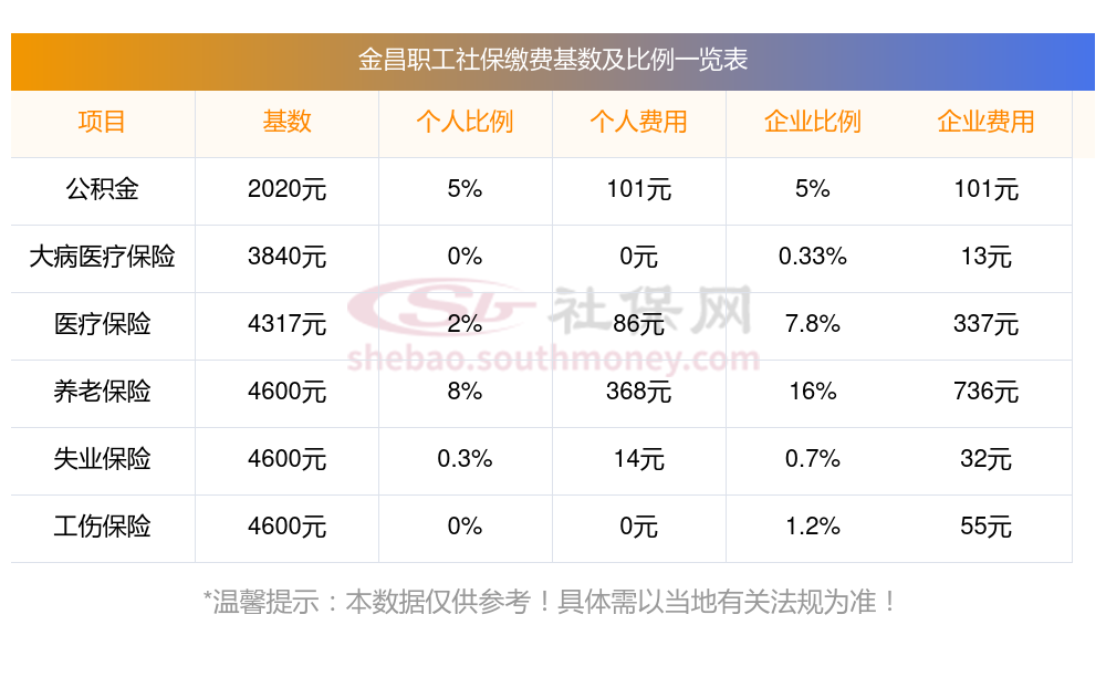 2025年金昌社保缴费价格,2025年金昌社保缴费多少钱?下表是2025年金昌社保费用明细参考,新社通app-社保缴费查询工具提供的最新数据如下: