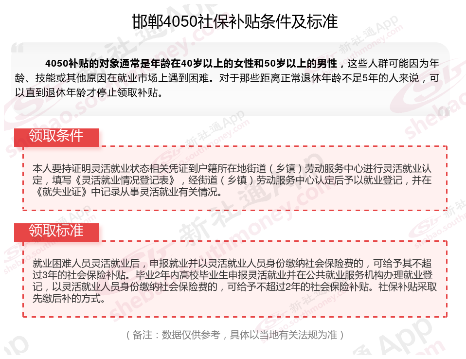 一、2025年邯郸4050社保补贴标准是怎么样的,附领取条件