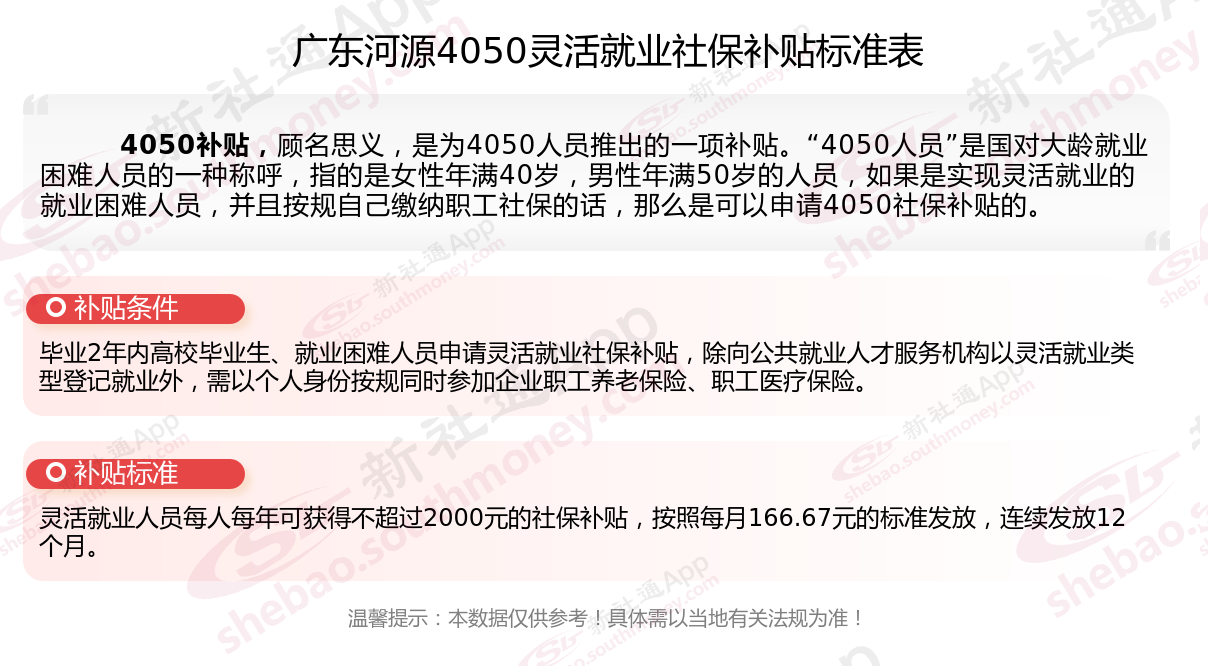 以上就是广东河源4050灵活就业社保补贴的相关内容,欢迎关注新社通/下载新社通APP了解更多五险一金专业资讯。