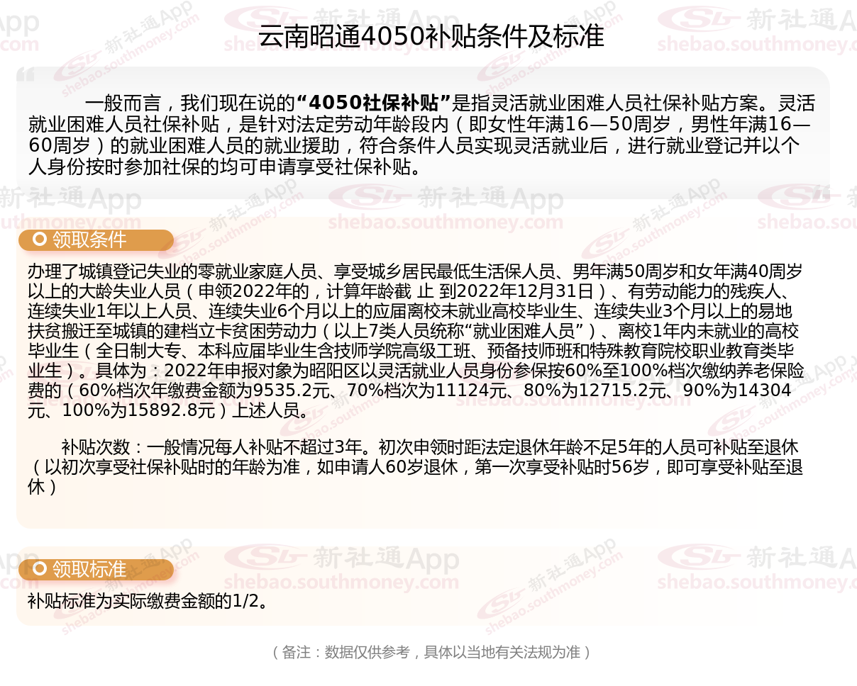 一、2025年云南昭通4050社保补贴标准是怎么样的,附领取条件