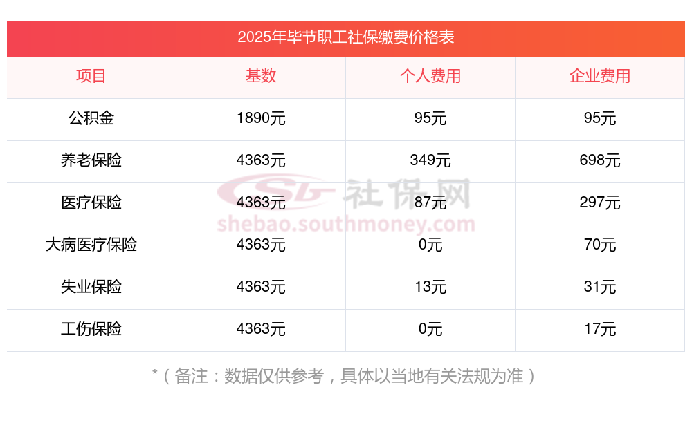 2025年社保缴费价目表,下面和新社小编一起来了解下2024-2025年毕节最低配社保费用明细参考,新社通app-社保缴费查询工具提供的最新数据如下: