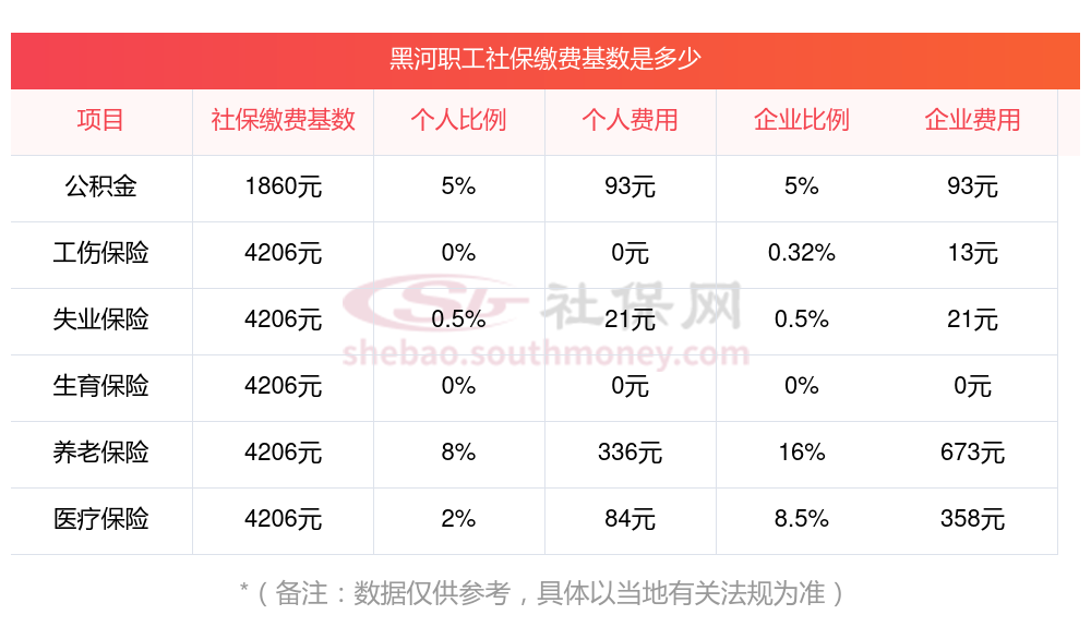 黑河的社保缴费情况,依据2025年最新的缴费标准,我们可以详细地进行如下说明。这些标准是根据新社通app-社保缴费查询工具提供的数据整理得出的: