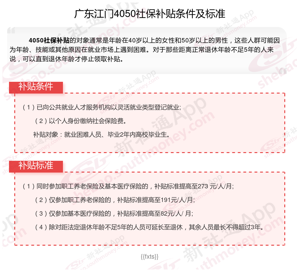 一、2025年广东江门4050社保补贴标准及条件是多少?
