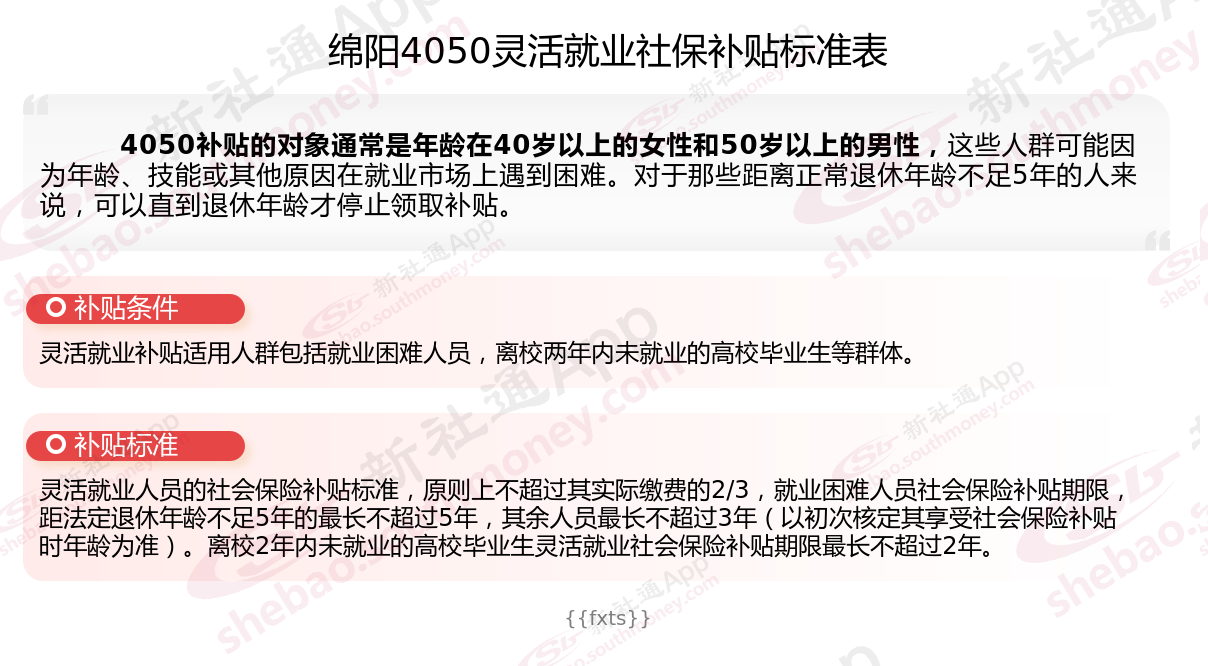 以上就是绵阳4050灵活就业社保补贴的相关内容,欢迎关注新社通/下载新社通APP了解更多五险一金专业资讯。