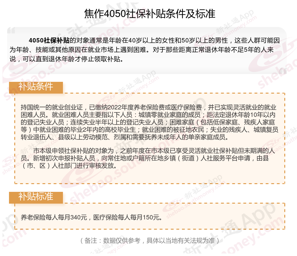 2025焦作4050补贴主要针对的是年龄在40岁以上的女性和50岁以上的男性,这些人群通常因为年龄较大而面临就业困难。