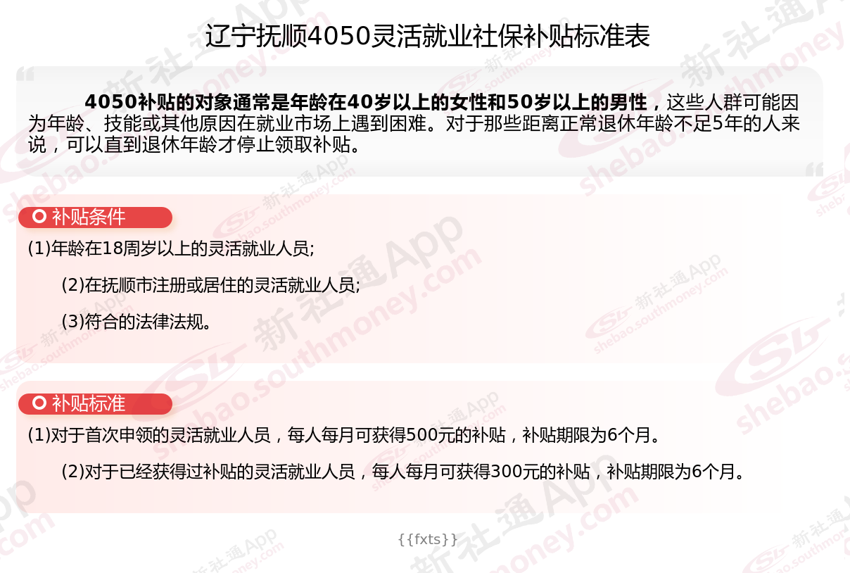 二、辽宁抚顺4050社保补贴标准及条件(2025年最新)
