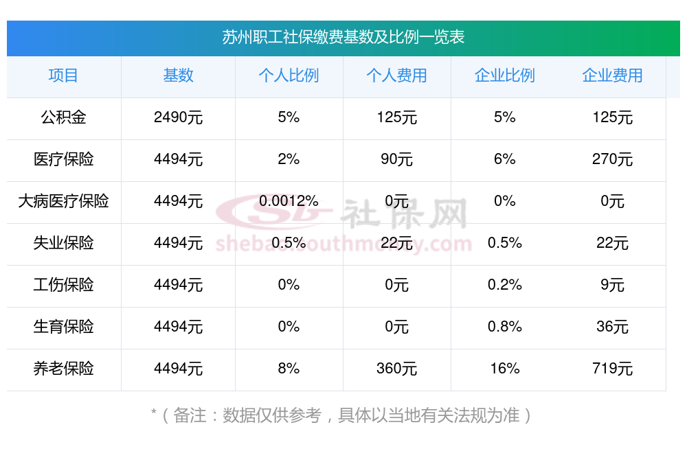 苏州缴费社保比例一览 社保公司和个人各交多少?下表是2024-2025年苏州社保费用明细参考,新社通app-社保缴费查询工具提供的最新数据如下: