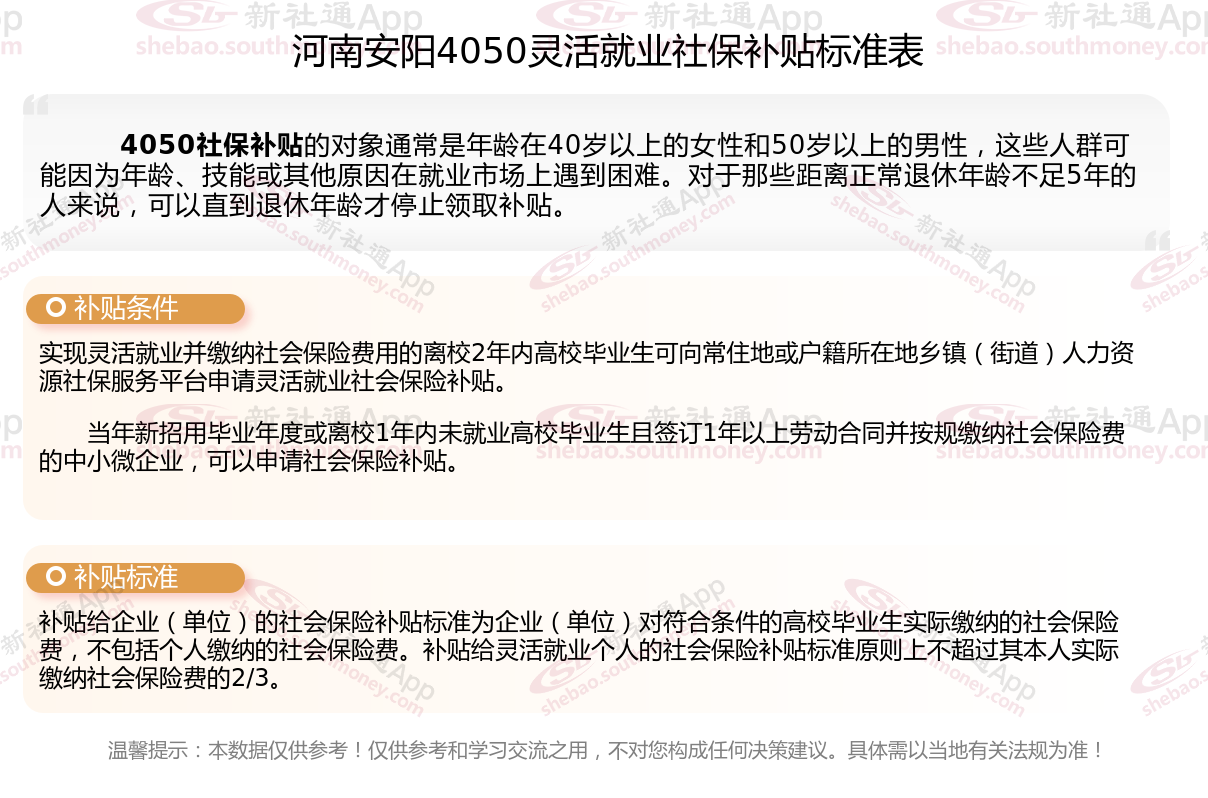 以上就是河南安阳4050灵活就业社保补贴的相关内容,欢迎关注新社通/下载新社通APP了解更多五险一金专业资讯。