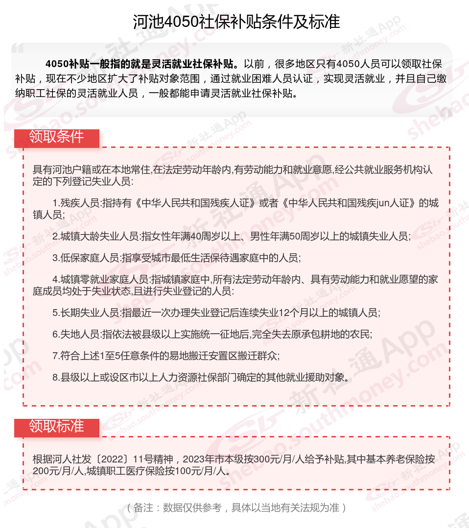 以上就是河池4050灵活就业困难人员社保补贴的相关内容,欢迎关注新社通/下载新社通APP了解更多五险一金专业资讯。