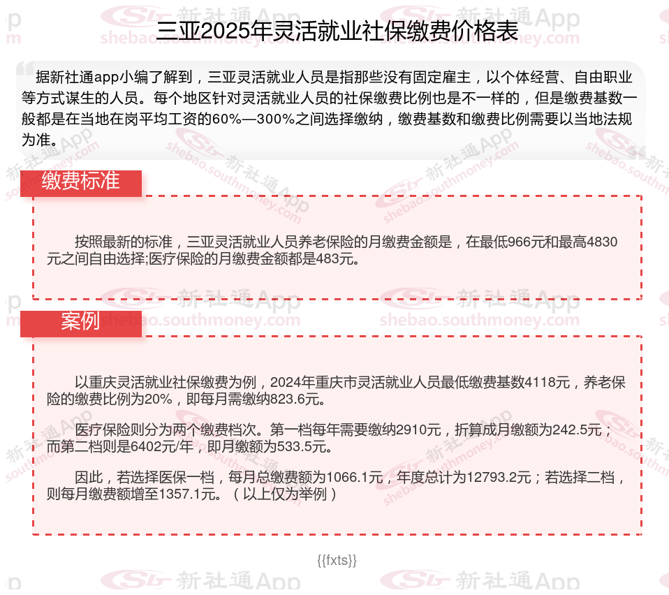 一、2025年三亚灵活就业社保缴费标准公布啦 三亚灵活就业社保多少钱一个月?