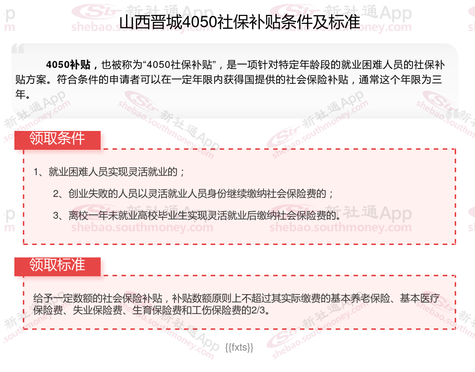 二、2025年山西晋城4050社保补贴标准及条件,最新如下:
