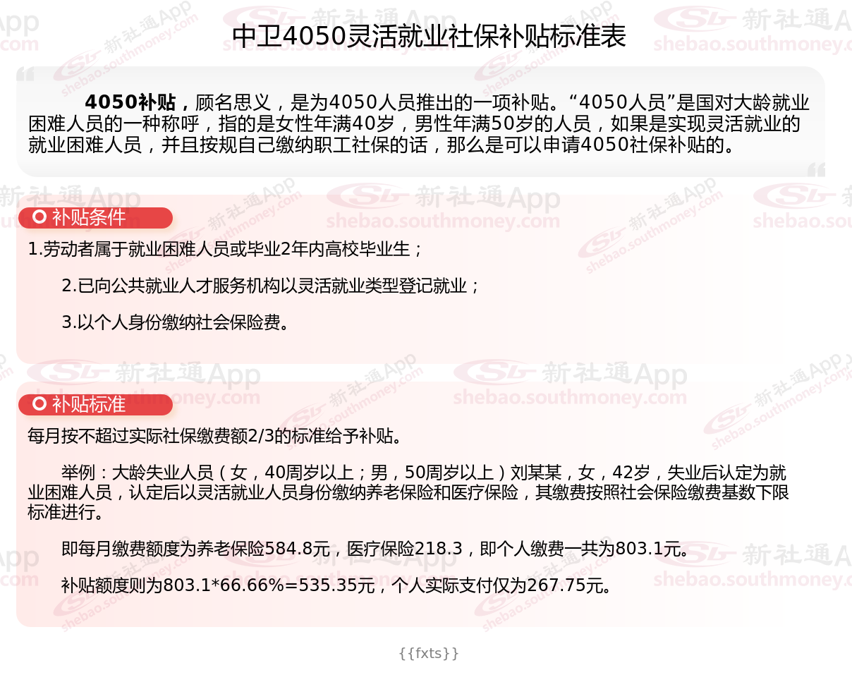 二、2025年中卫灵活就业4050社保补贴标准及条件是什么?来了解一下