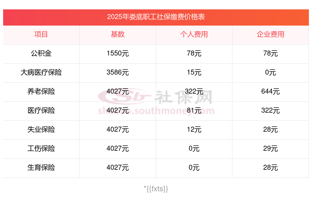 根据新社通app-社保缴费查询工具提供的最新数据,娄底地区2025年的社保缴费标准已经确定。以下是各项保险的缴费比例及相应金额(基于一定的缴费基数)的详细说明: