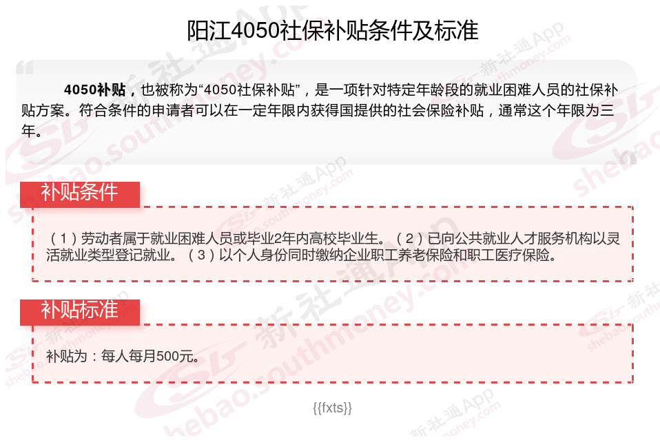 二、2025年阳江4050社保补贴标准及条件,最新如下: