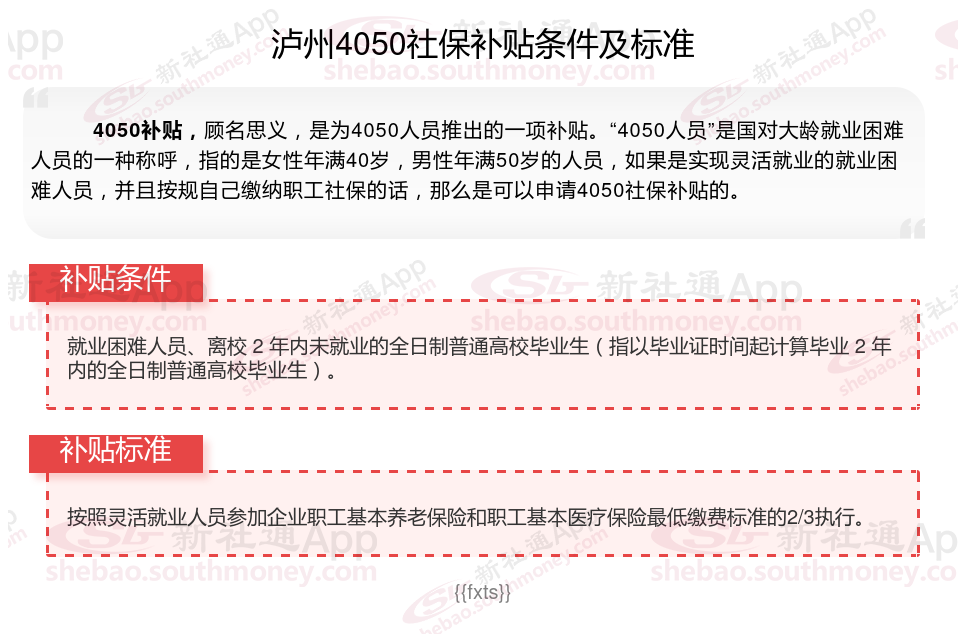 一、2025年泸州4050社保补贴标准及条件是多少?