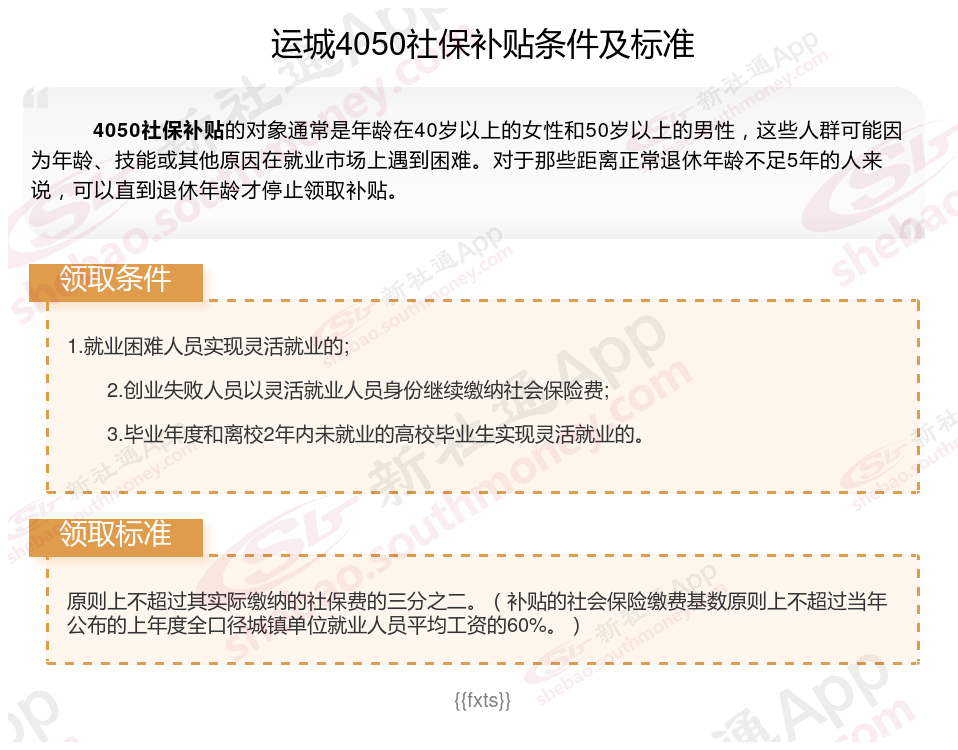 二、运城4050社保补贴标准及条件4050社保补贴,最新如下