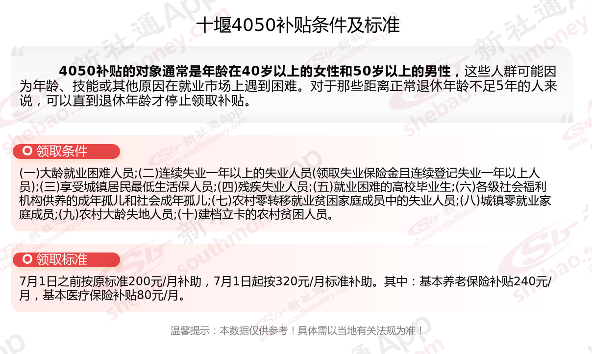 一、2023-2024年十堰4050社保补贴标准及条件是多少?