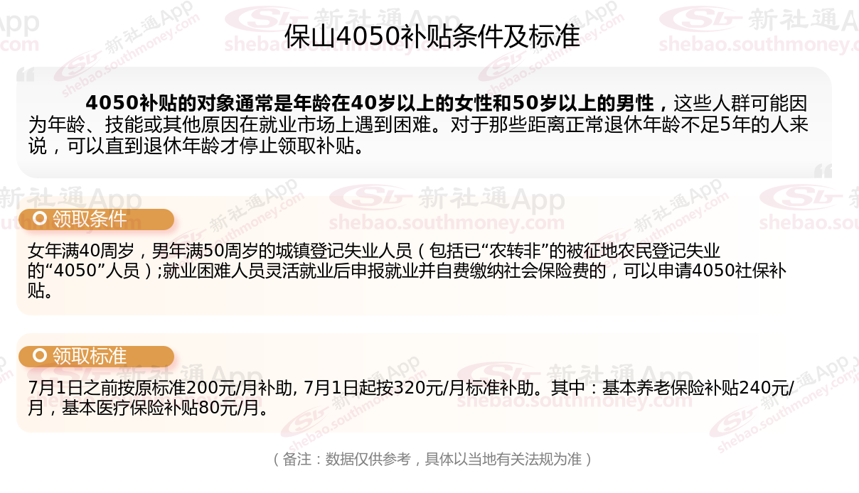二、2025年保山4050社保补贴标准及条件,最新如下: