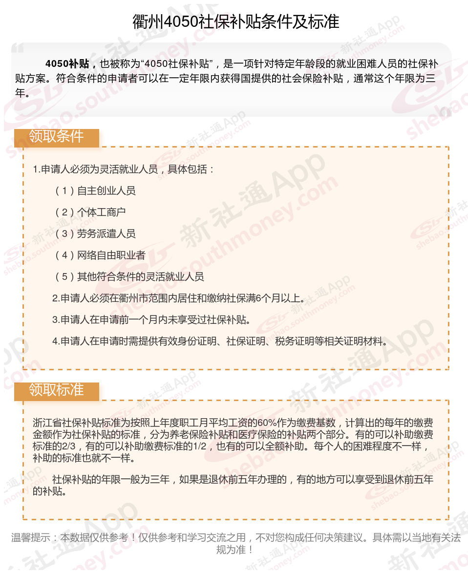 二、衢州灵活就业4050社保补贴标准2025年(4050社保条件是什么)