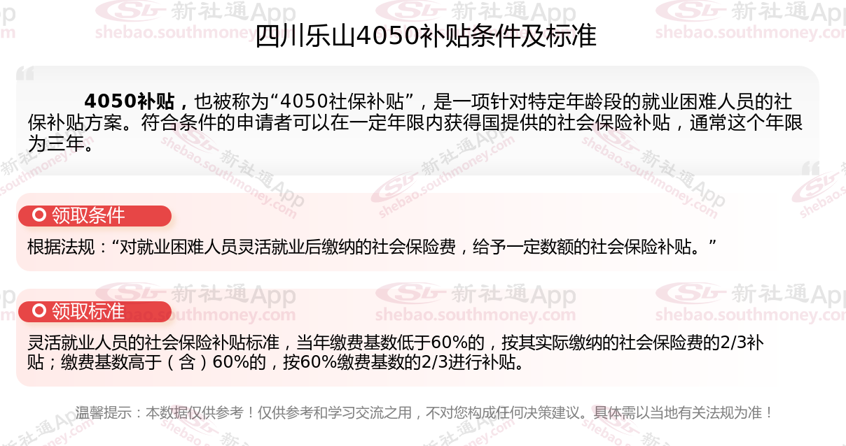 以上就是四川乐山4050灵活就业社保补贴的相关内容,欢迎关注新社通/下载新社通APP了解更多五险一金专业资讯。