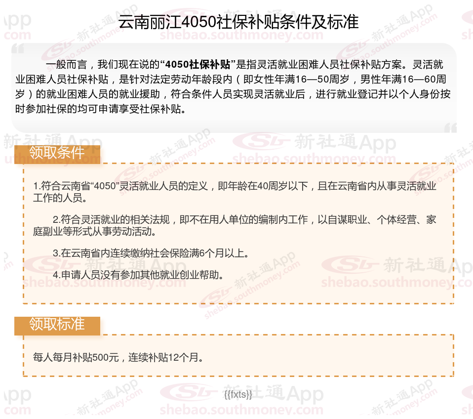一、云南丽江4050社保补贴标准及条件2025年最新消息