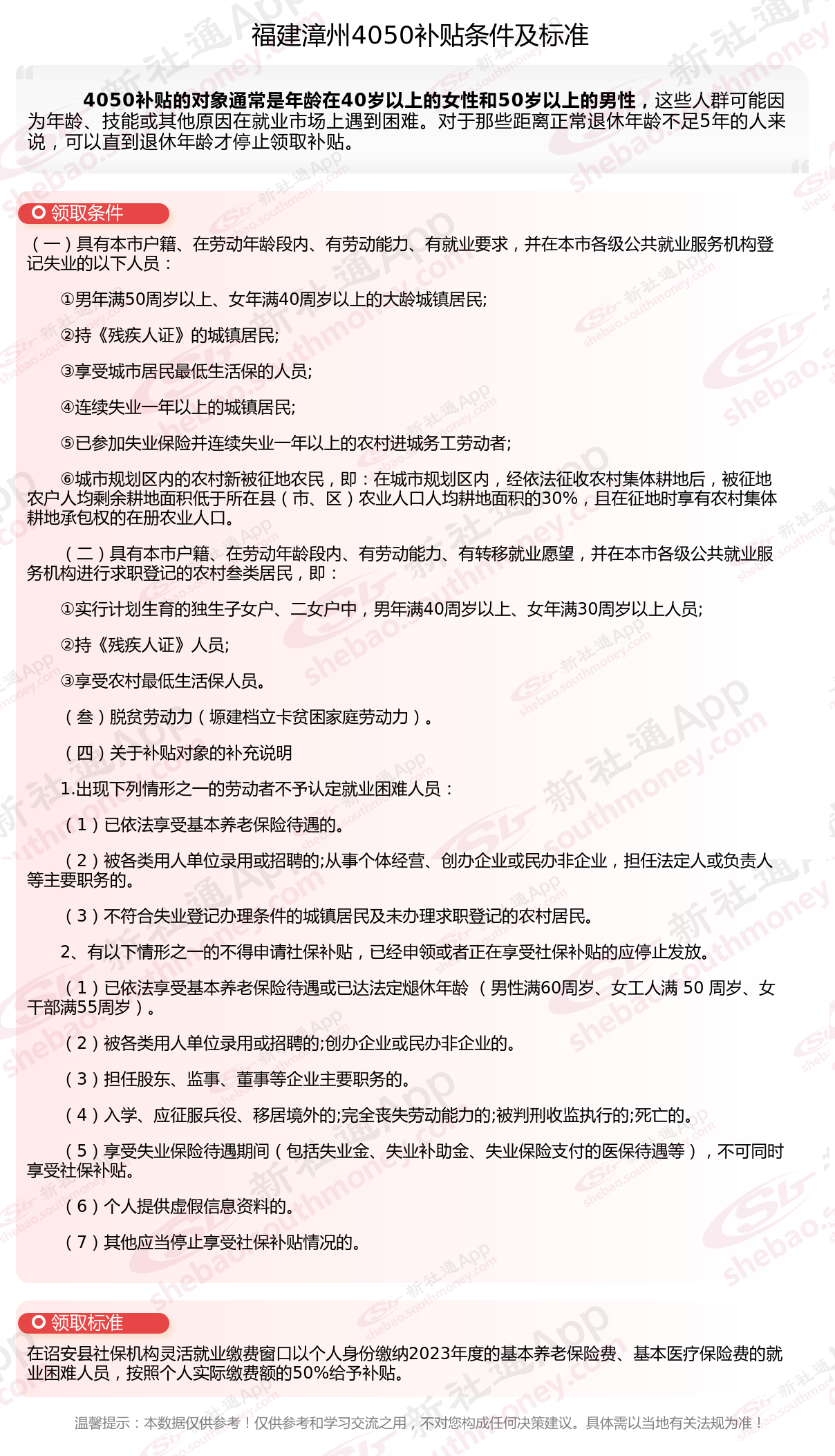 2025福建漳州4050补贴主要针对的是年龄在40岁以上的女性和50岁以上的男性,这些人群通常因为年龄较大而面临就业困难。