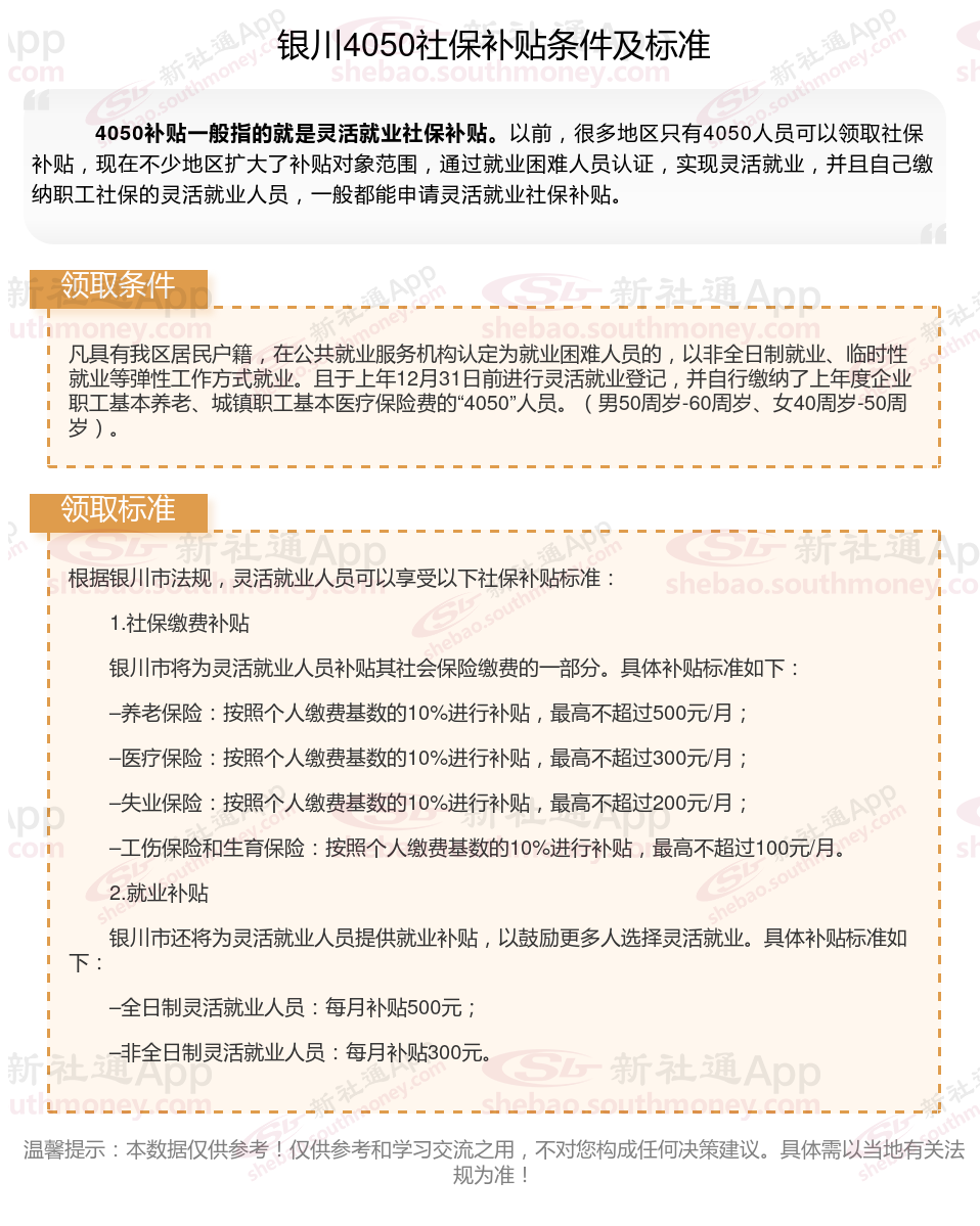 2025银川灵活就业4050社保补贴是一项面向特定年龄段的就业困难人群的社会保险补贴。