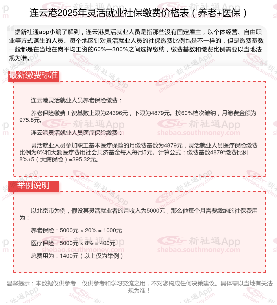 一、2025年连云港灵活就业社保缴费标准公布啦 连云港灵活就业社保多少钱一个月?
