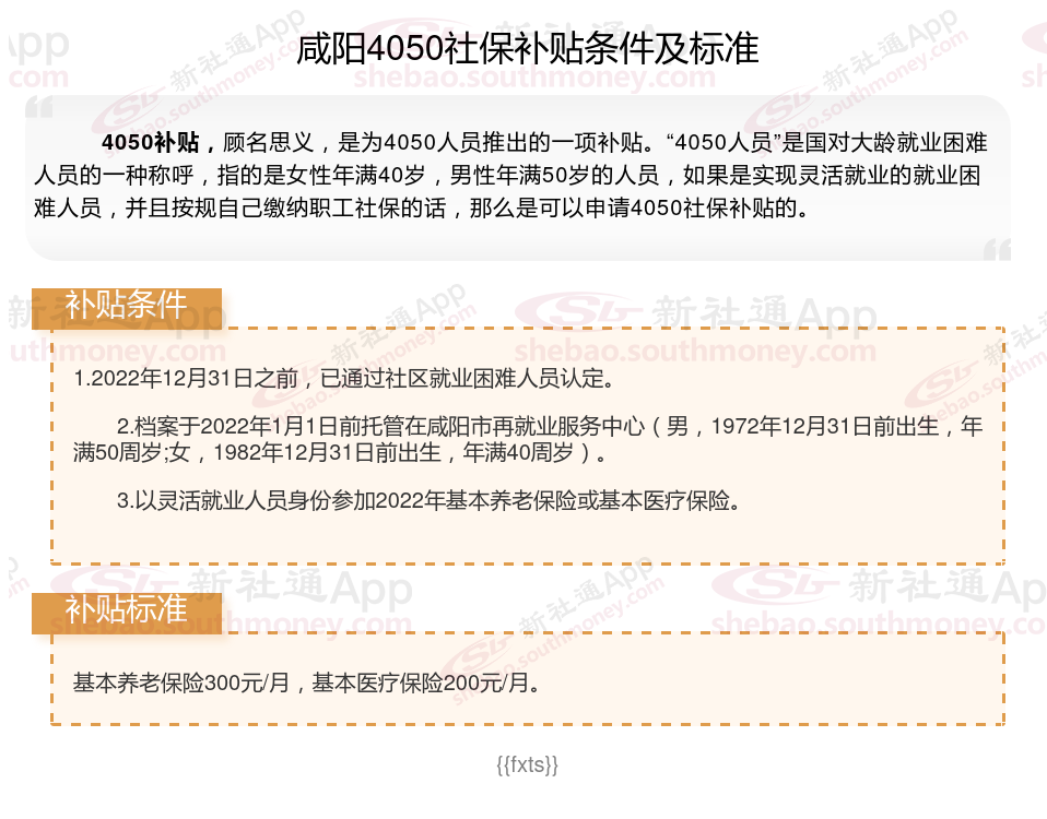 2025咸阳灵活就业4050社保补贴是一项面向特定年龄段的就业困难人群的社会保险补贴。