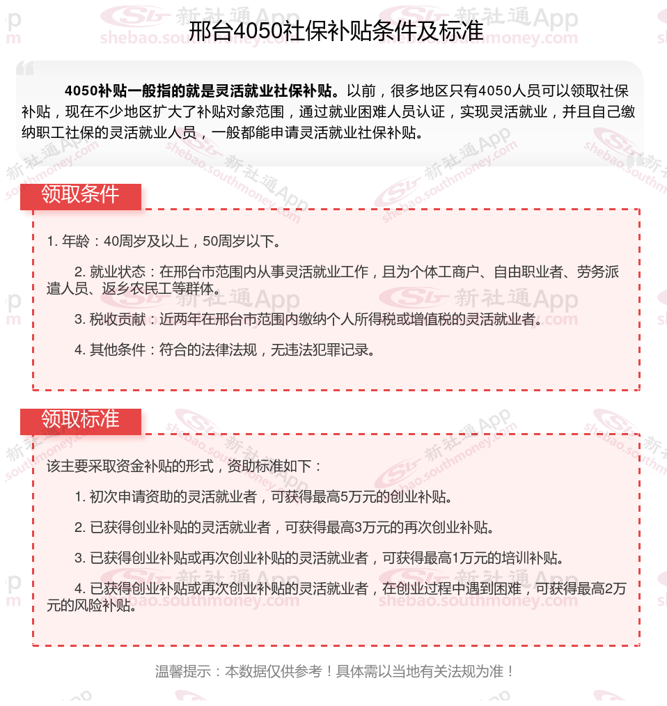 二、2025年邢台4050社保补贴标准(邢台4050灵活就业人员补贴标准是多少钱?邢台2025年4050补贴新规能领多少钱?)