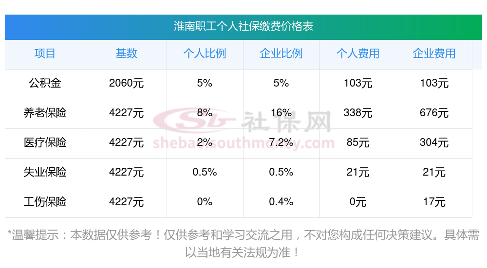 淮南社保各基数的缴费比例是多少?和新社小编一起来看看,新社通app-社保缴费查询工具提供的最新数据如下: