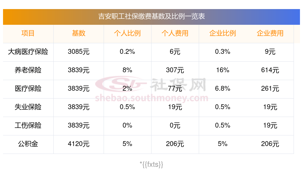 吉安社保缴纳情况是怎样的?一起和社保网app一起来看看下面的明细表: