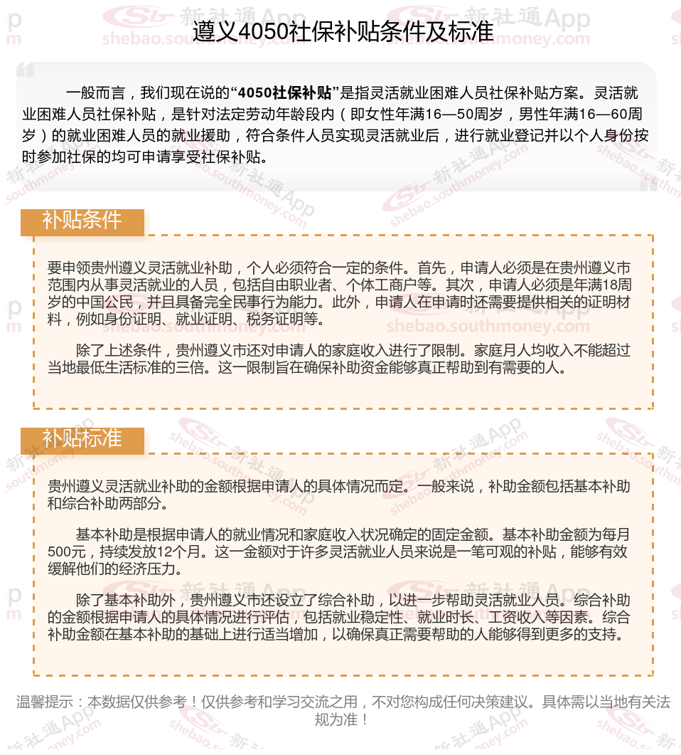 二、2025年遵义4050社保补贴标准及条件,最新如下: