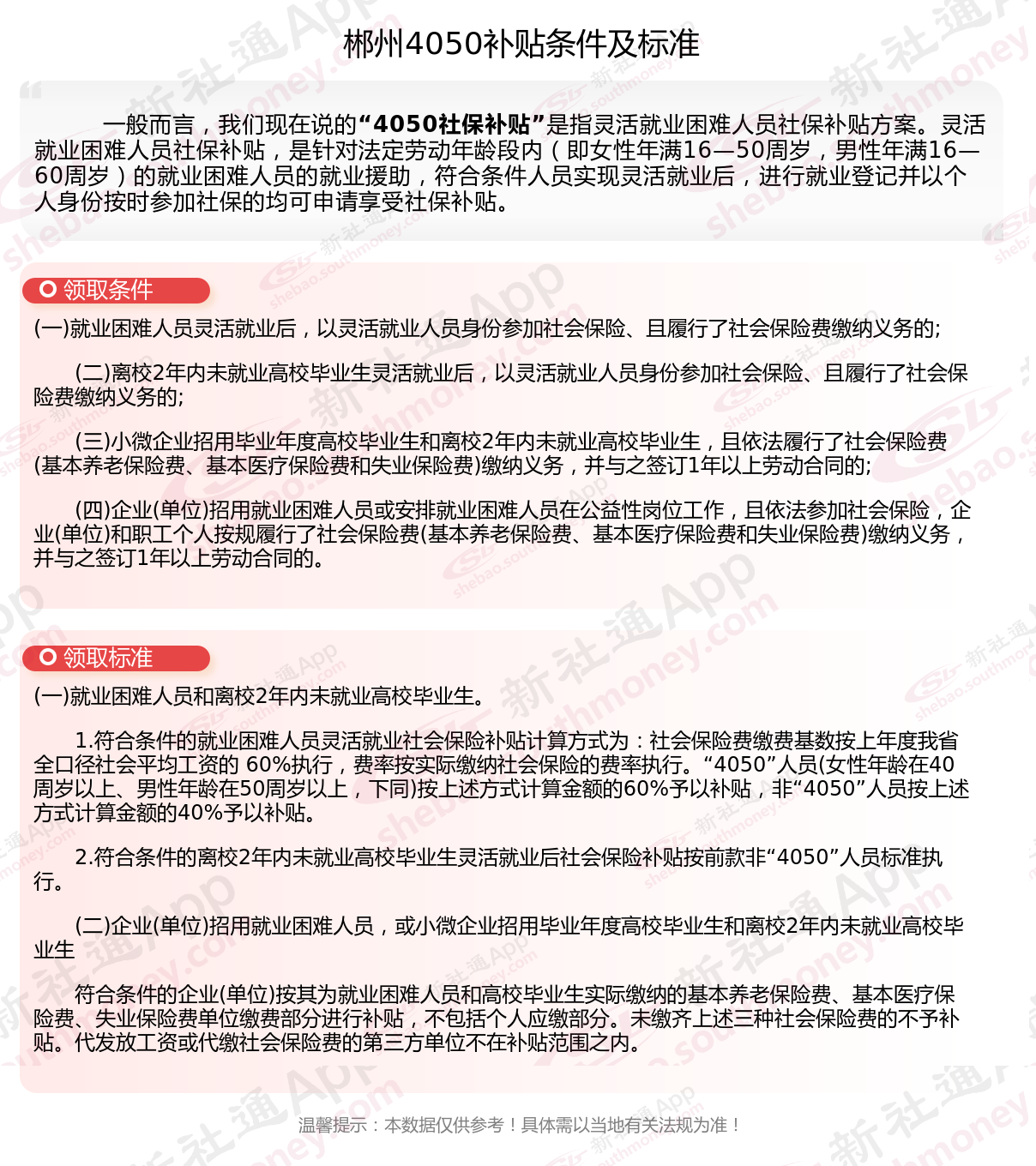 以上就是郴州4050灵活就业困难人员社保补贴的相关内容,欢迎关注新社通/下载新社通APP了解更多五险一金专业资讯。