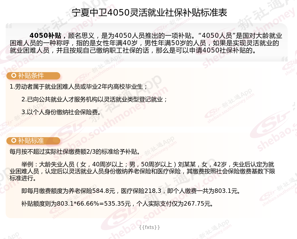 二、2025年宁夏中卫灵活就业4050社保补贴标准及条件是什么