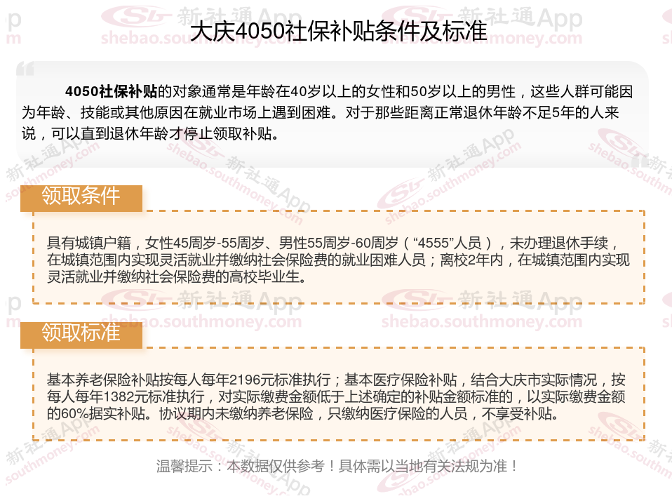 二、大庆4050社保补贴标准及条件2025年最新消息