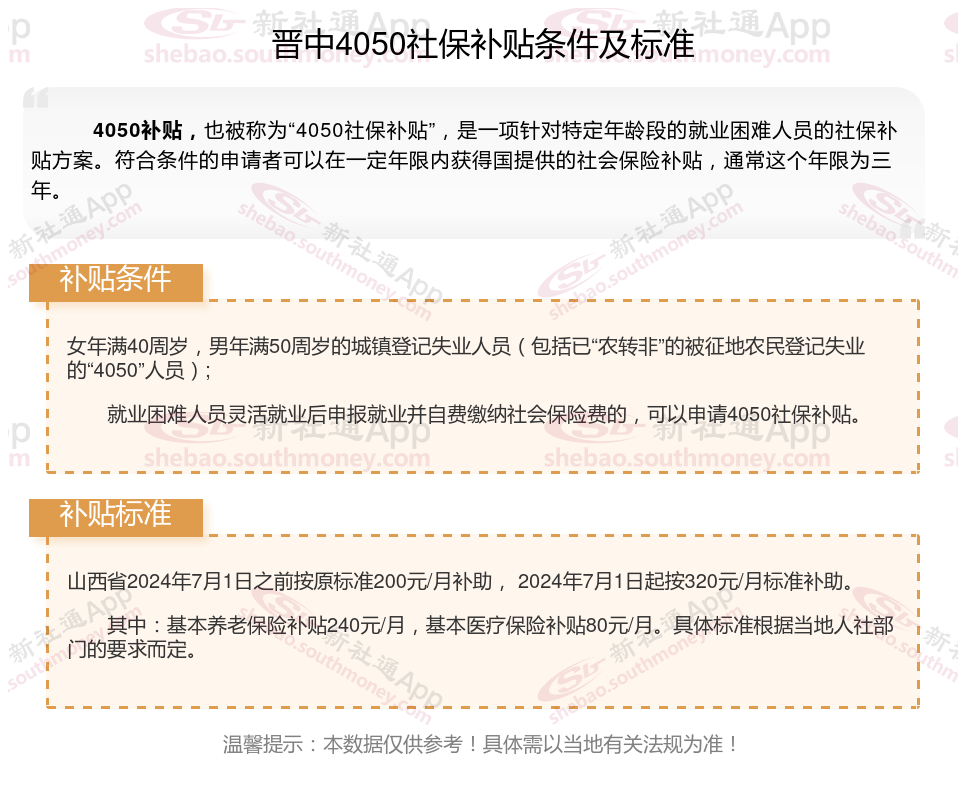 一、2023-2024年晋中4050社保补贴标准及条件,最新如下
